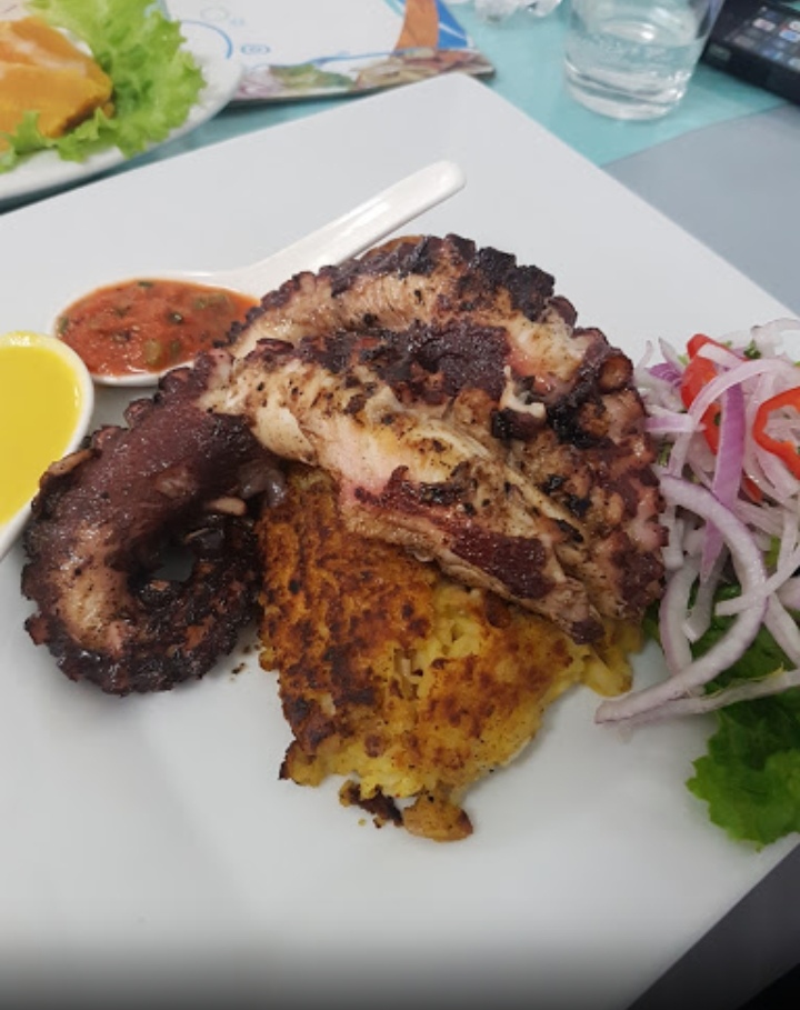 El pulpo al Grill, estaba rico, un plato crujiente, con su punto exacto de sal acompañado de su tacu tacu y su sarsa de cebolla, la presentación era implacable,la porción era pequeña, su costo era de s/35.00 nuevos soles, me agrado mucho el plato mas aun acompañado de su exquisita chicha.